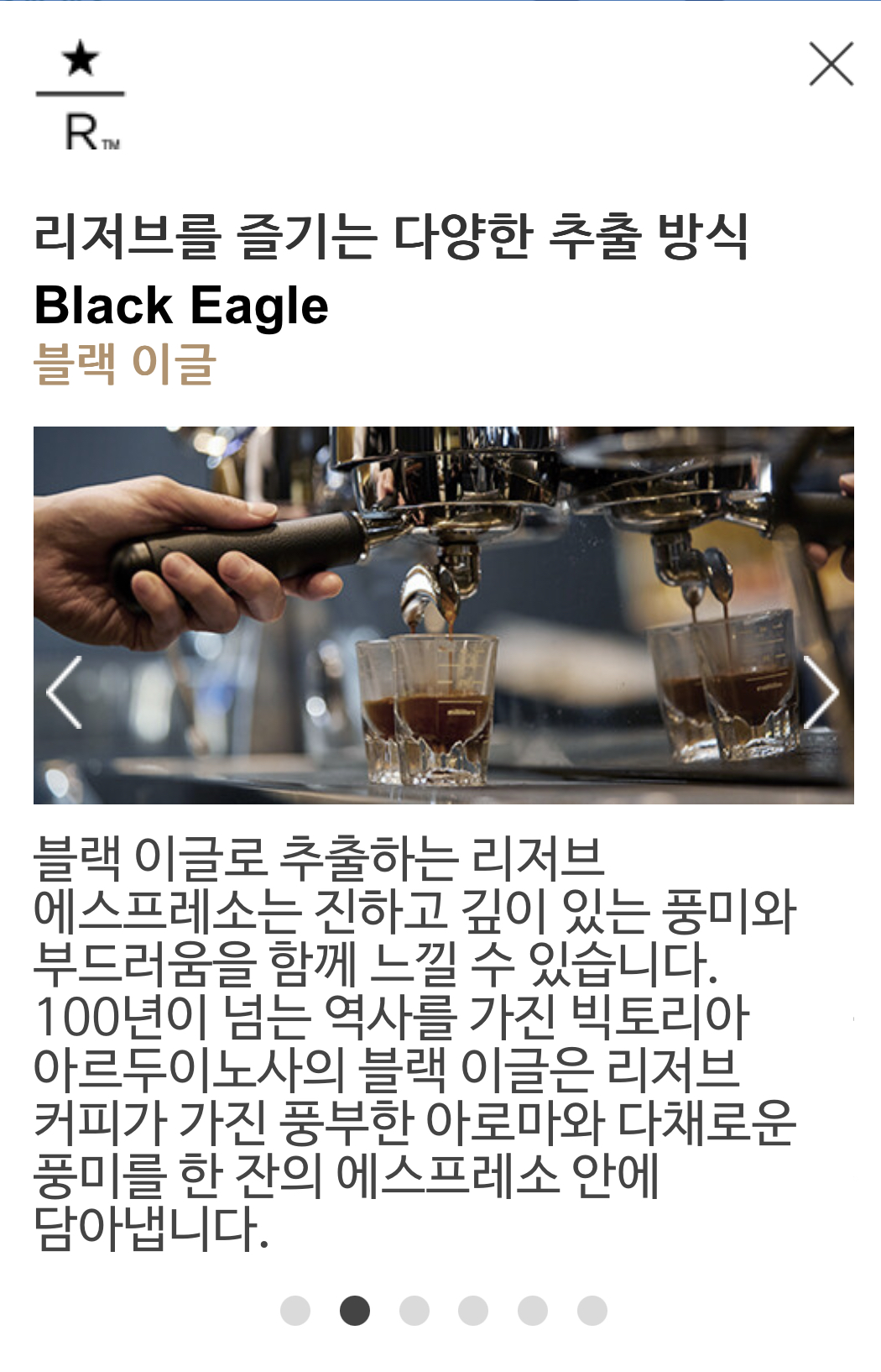 * Starbucks Reserve™ Bar는 전국 리저브 R 매장에서 만나볼 수 있습니다.