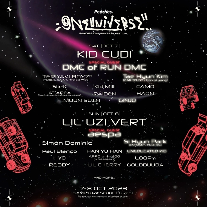 OCT 8 (Sun): Lil Uzi Vert / aespa / Simon Dominic / Si Hyun Park (Car Stunt) / Paul Blanco / HAN YO HAN / UNEDUCATED KID / HYO / APRO with 1300 / LOOPY / REDDY / Lil Cherry / GOLDBUUDA and more...