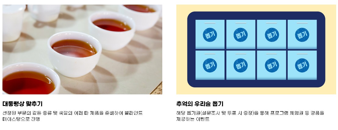 | 상시운영 | 우리술 MBTI, 우리술과 인생샷, 소비자 품평회, 추억의 우리술 뽑기, 우리술 빙고 / 주류업계 트렌드 세미나 | |||||