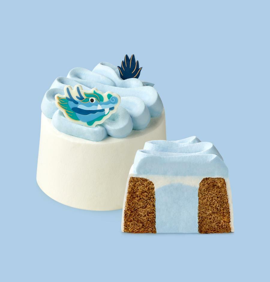 푸른 용을 표현한 생크림과 촉촉한 얼 그레이 쉬폰 속 생크림이 듬뿍 든 케이크