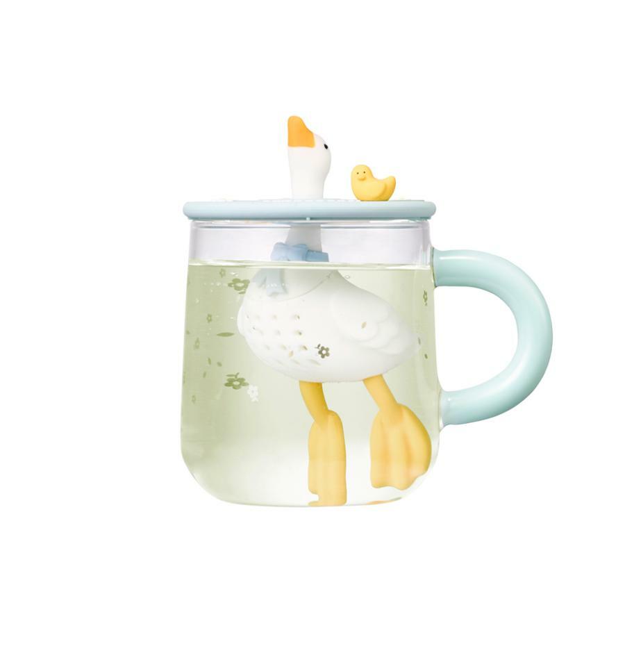 수영하는 오리의 모습을 담은 인퓨저 글라스입니다.