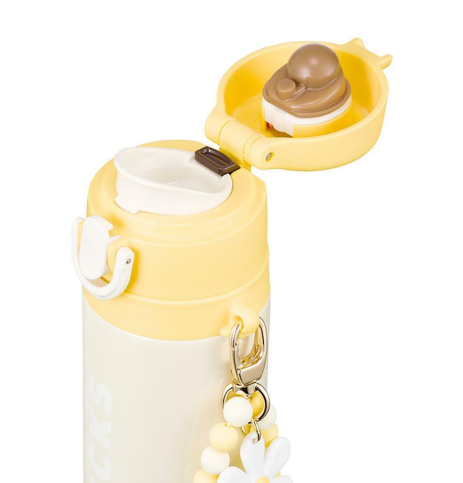 봄을 담은 옐로우 컬러와 아기자기한 플라워 참이 돋보이는 550ml 용량의 보온병입니다.