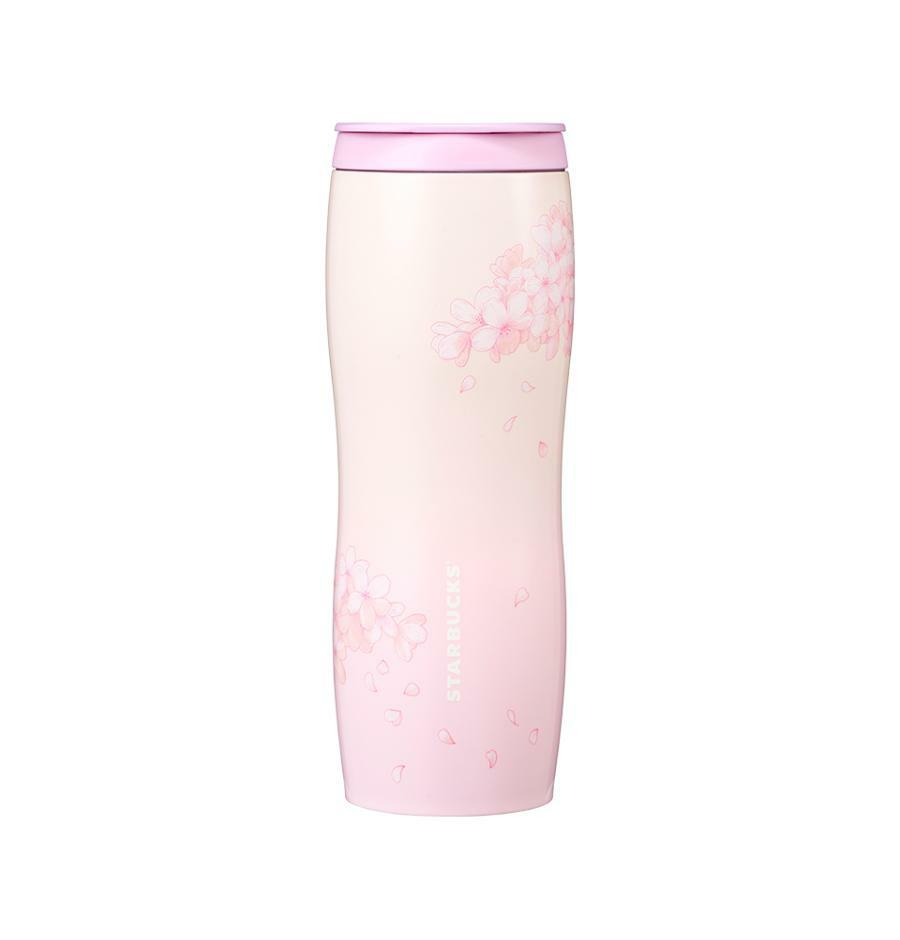 은은한 핑크 그러데이션과 벚꽃이 흩날리는 영롱한 모습을 담은 473ml 용량의 스테인리스 스틸 텀블러입니다.