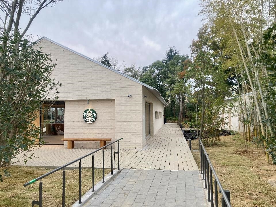 광릉수목원점입구에서는수목원점의아이덴티티를보여주는조경과스타벅스사이렌로고가 고객을반깁니다.산으로둘러싸여어느곳에서나자연을바라볼수있는곳.층고가높은내부는 크고시원한분위기로쾌적한공간경험을선사하며,야외테라스석에서는자연풍경이한눈에 들어와사계절변화에따른색감의변화를볼수있다는것이매력입니다.
