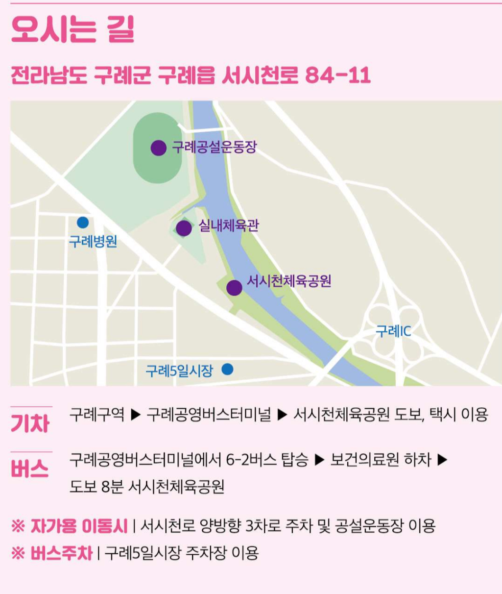 장소 : 주무대(구례읍 서시천체육공원) 보조무대(문척면 전천마을)