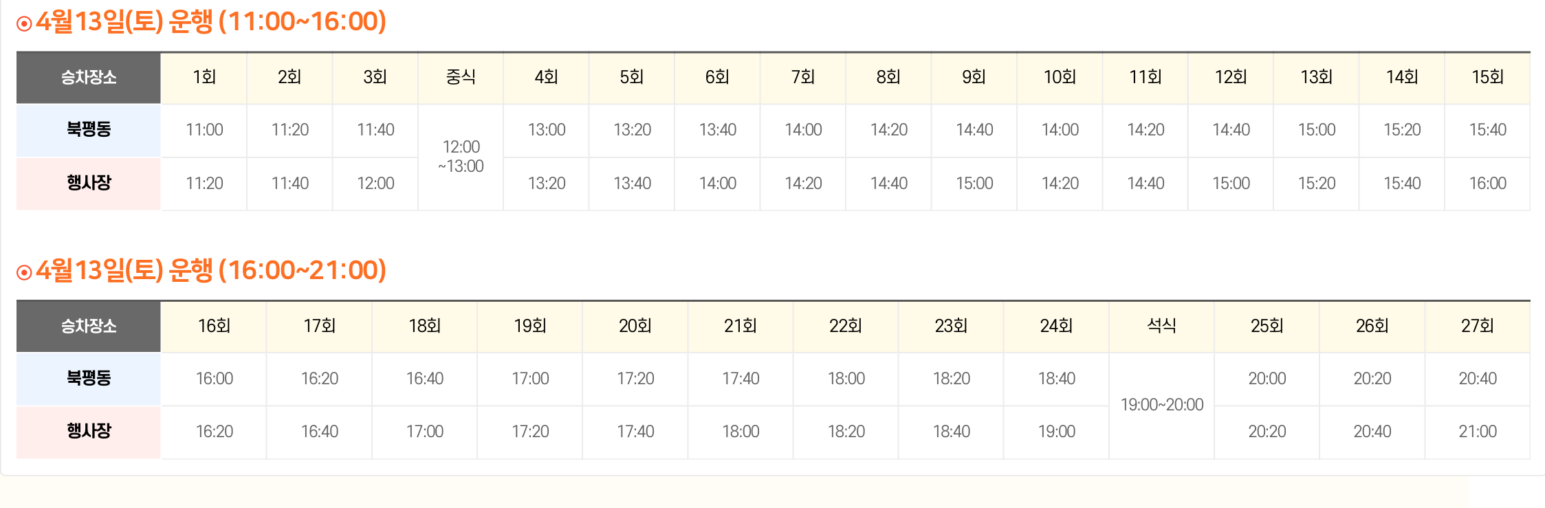 4월12일(금) ~ 4월14일(일) 11시~20시 / 4월13일(토)21시까지 연장운행
