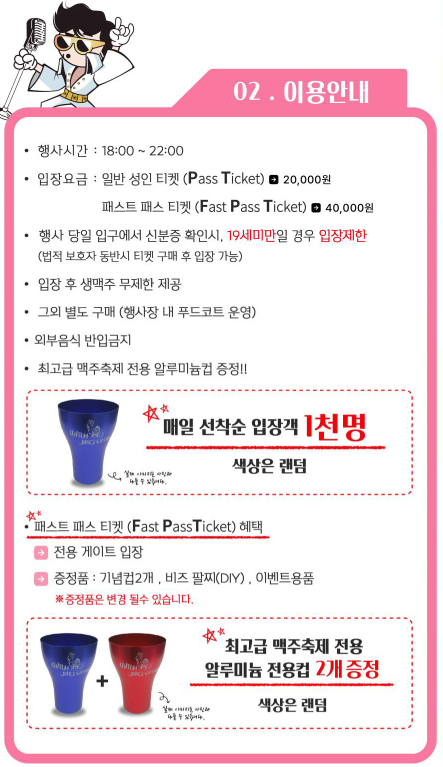 • 온라인을 통해 사전예매시 현장구매보다 빠른 입장과 할인 제공