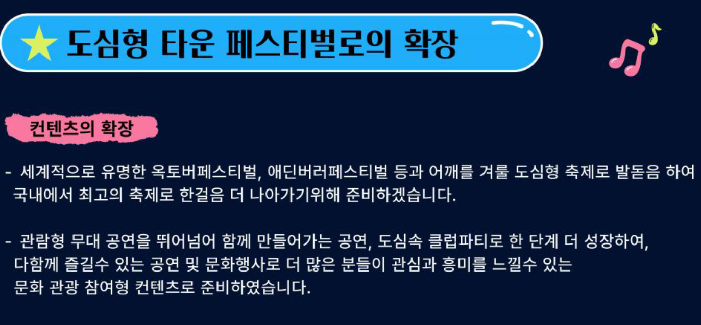 부산시민들과 소통하고 부산관광 활성화에 기여하며 외국인 관광객 유입까지 다양한 문화 행사