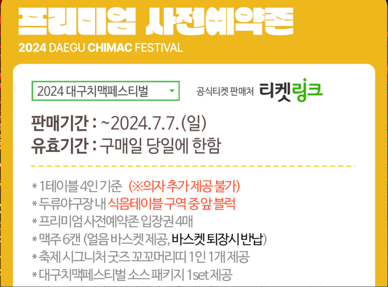 [티켓링크] 2024 대구치맥페스티벌 <프리미엄 사전예약존>