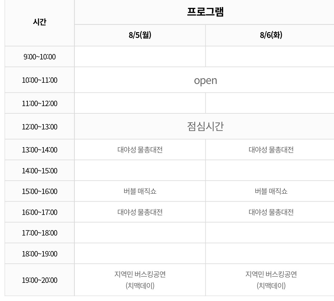 내 용 버블 매직쇼, 벌륜쇼, 버스킹 공연 등