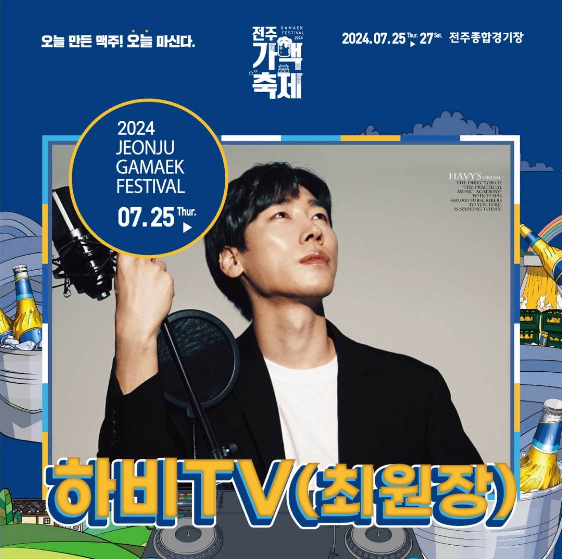 전주 현지인들이 인정하는 가맥업소들과 화려한 공연이 한 데 어우러져 2024년 7월 25일(목)부터 27일(토)까지 3일간 시원하고 짜릿한 여름밤을 선사하겠습니다.