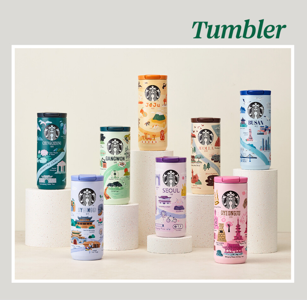 충청의 상징적인 장소와 조형물을 담은 텀블러