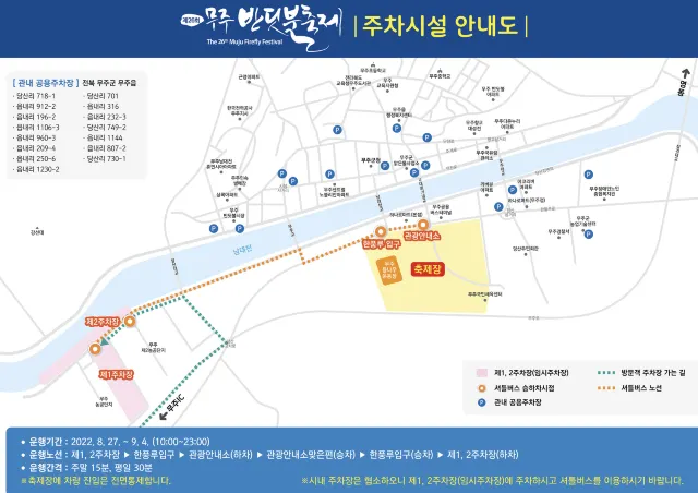 행사장 내 차량 진입 불가 주면주차 공간이 없으니 임시주차장을 적극 활용하여 주시기 바랍니다.